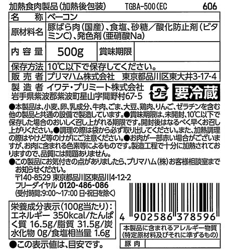 乾塩製法ベーコン 500g
