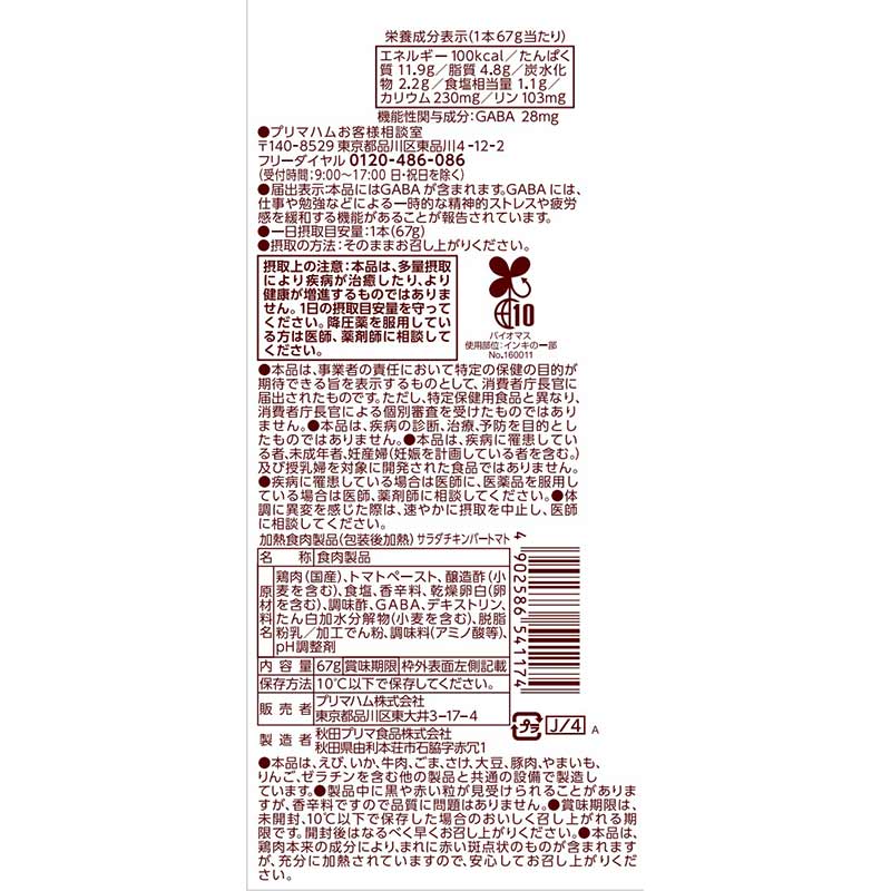 サラダチキンバー GABA入りトマト 67g