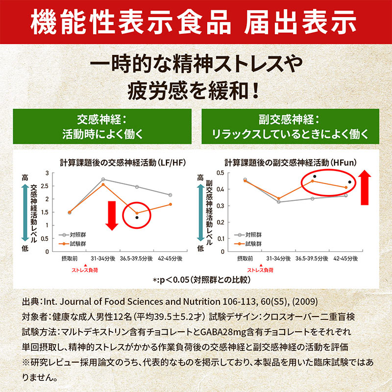 ◆仕事や勉強などによる、一時的な精神的ストレスや疲労感を緩和する機能があることが報告されているGABA入りです。